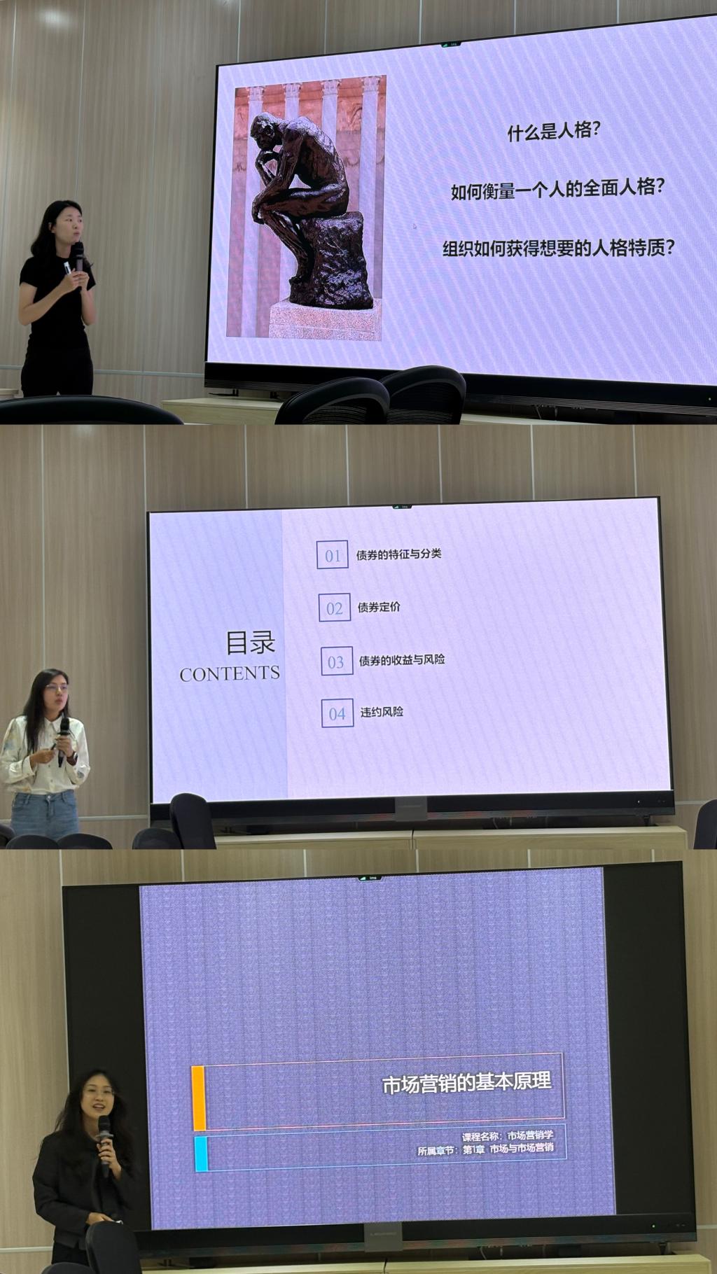 经过各系选拔推荐,组织与人力资源管理系嵇月婷、金融与财务系高震男、市场营销系凌若冰三位青年教师最终入围参赛。大赛邀请了第十三届北京市青年教师教学基本功大赛的优秀指导教师朱飞教授、北京市青年教师教学基本功大赛一等奖获得者李加鹏老师、学院深耕教学一线的资深教师张淑君教授以及学院教学委员会的委员作为评审嘉宾。学院本科项目主任顾雷雷教授担任本次大赛的主持人。