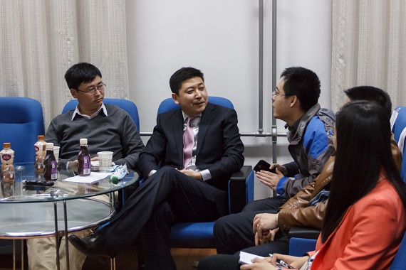 11月5日晚19点30分,第69期行业导航沙龙与大家准时相约在中心A20房间。本期沙龙活动的分享嘉宾是北京和为永泰科技有限公司总经理、中财第一届MBA创业俱乐部主席费云健学长(2004级MBA);主持嘉宾是通用电气神华气化技术有限公司董事副总经理、中财第三届MBA校友会会长冯大任学长(2007级MBA)。2007级以来各届MBA联合会和校友会的同学代表,以及beat365亚洲版官方网站创业先锋班、法律硕士、国际贸易硕士等专业的同学共计50余人参加了此次沙龙活动。