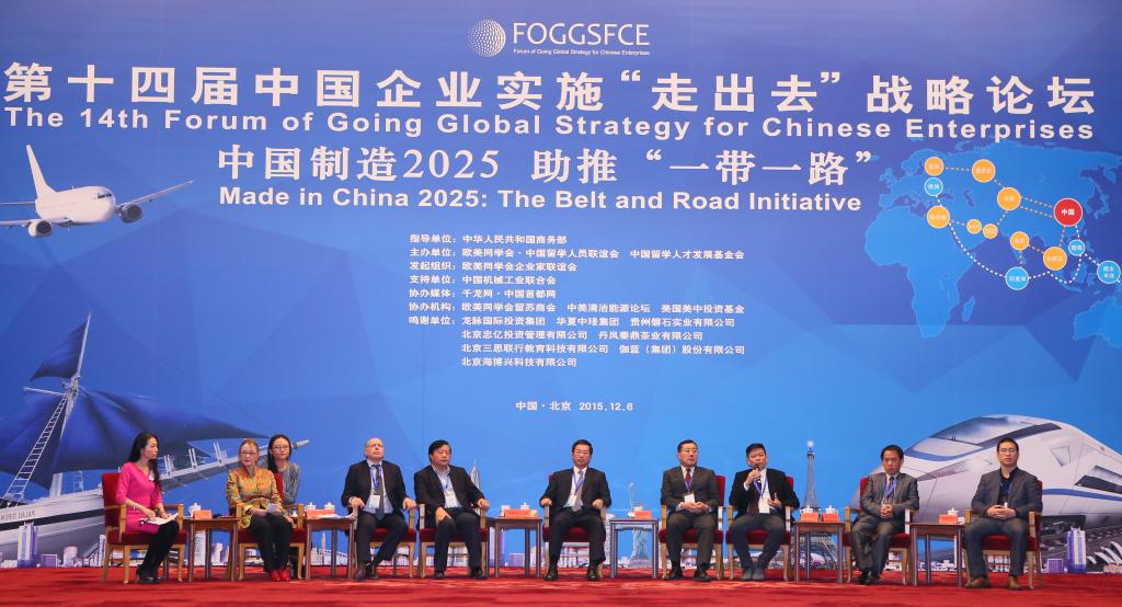2015年12月6日,由欧美同学会企业家联谊会组织发起,欧美同学会·中国留学人员联谊会、中国留学人才发展基金会共同主办的第十四届中国企业实施“走出去”战略论坛在人民大会堂隆重召开。各有关部委领导、知名并购企业、投融资机构代表,以及来自中国、美国、英国、法国、德国、加拿大、日本、韩国、台湾、香港、澳门等国家和地区的700多位代表出席。