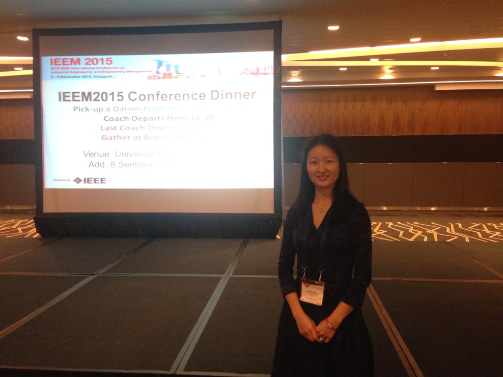 2015年12月6日至9日,2015年 IEEM国际会议在新加坡召开。beat365官网beat365亚洲版官方网站供应链与运营管理系副教授代宏砚老师、2014级物流管理专业硕士研究生滕月同学受邀前往参加此次国际学术会议。