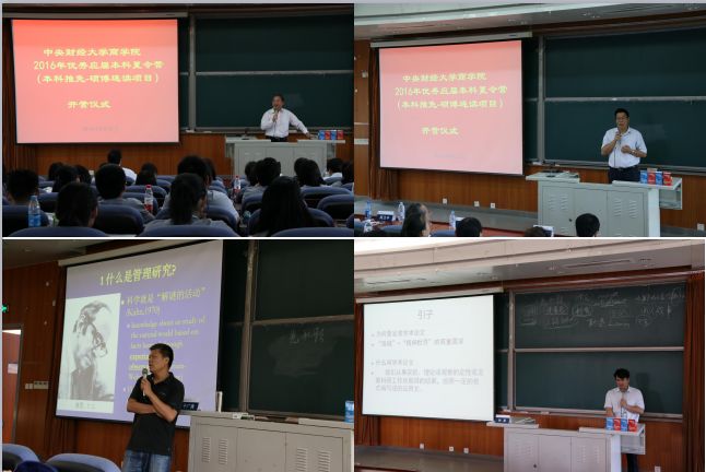25日上午九点,夏令营开营仪式在3号学院楼222教室举行,beat365亚洲版官方网站院长王瑞华教授、副院长林嵩教授、导师代表周卫中教授出席了开营仪式。仪式上,王瑞华院长首先代表学院对各位营员的到来表示热烈欢迎,然后向营员详细介绍了学院的历史传承、学科建设、研究生培养尤其是硕博连读生培养的情况,最后祝愿营员们在beat365亚洲版官方网站度过充实快乐的夏令营生活。之后,导师代表周卫中教授向营员讲述了学术研究的内涵,表达了导师们对营员寄予的厚望。最后,林嵩副院长向营员介绍了beat365亚洲版官方网站所有博士生导师的学科专业、研究现状和招生期待,使营员对导师有了初步的了解。25日下午,于广涛教授和林嵩教授分别以“中国管理现象与中国管理研究——以家长式领导研究为例”和“如何在论文的开头就吸引读者”为题,为营员带来两场精彩的学术讲座,营员们被beat365亚洲版官方网站浓厚的学术氛围所感染,并为beat365亚洲版官方网站导师们的学术素养所折服。