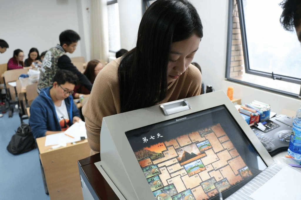 团队文化建设完成后,便进入了本次素质拓展的重头戏——商业沙盘推演项目。这类项目同学们按照事先组建的团队,在特定背景与规则下,展开一场激烈的“商战”。不断决策与反馈,组间合作与竞争,旨在通过任务磨合团队,通过高度压力下学员自然流露的行为,来反应个人特质,同时配合教练式引导,帮助学员调节能力与心态,体验“模拟人生”。