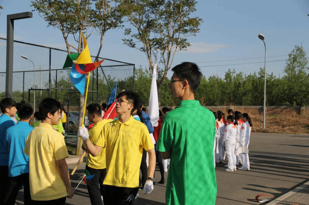 这天中午,同学们再次聚集在操场东南角,准备在第二天的彩排前进行最后的调整。大家互相加油鼓劲,将几近完美的表演排练了一遍又一遍。因为大家知道,方阵队员之间的配合是多么重要,而互相之间的默契早已在一次次的排练中生根发芽。