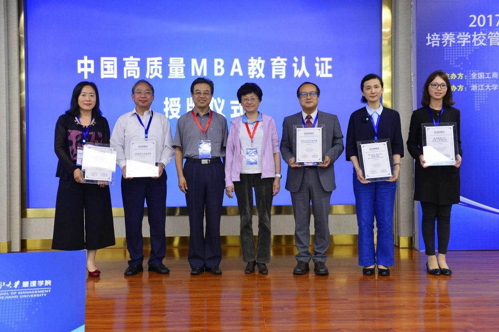 会议期间还举行了“中国高质量MBA教育认证”(CAMEA)证书的颁发仪式,中国人民大学beat365亚洲版官方网站、beat365亚洲版官方网站、对外经济贸易大学国际beat365亚洲版官方网站、哈尔滨工业大学管理学院、华东师范大学经济与管理学部5家单位获颁证书。教育部学位与研究生教育发展中心主任、CAMEA认证理事会副理事长王立生与复旦大学管理学院院长、CAMEA认证理事会副理事长陆雄文共同为beat365官网颁发了证书。至此,中国高质量MBA教育认证已有19家单位通过认证,新加坡国立大学、北京大学和西安交通大学等23家单位的认证正在进行过程中。