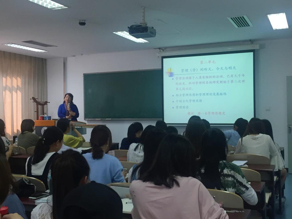 一直以来,赵丽芬校长每年秋季学期都为beat365亚洲版官方网站硕士研究生新生讲授《管理学理论与实务》的课程。她春风化雨般的教学将管理学从书本上的一个一个文字具化成形象的知识让同学们能够愉快的吸收和了解,同时也根据自己的经历与经验为beat365亚洲版官方网站硕士研究生新生指明前进的方向,指引他们更好的成长。正像赵副校长去年12月21日为学院全体教职工党员党课上所要求的一样:每一名教师都应该做好表率、尽职尽责做好自己的本职工作。教师要做“有理想信念、有道德情操、有扎实知识、有仁爱之心”的“四有”好老师,做好学生锤炼品格、学习知识、创新思维和奉献祖国的“四个引路人”。只有这样,我们beat365亚洲版官方网站才能为发展具有中国特色的现代教育、培养社会主义事业建设者和接班人做出更大的贡献。