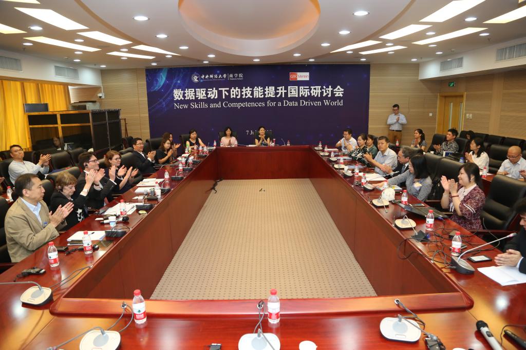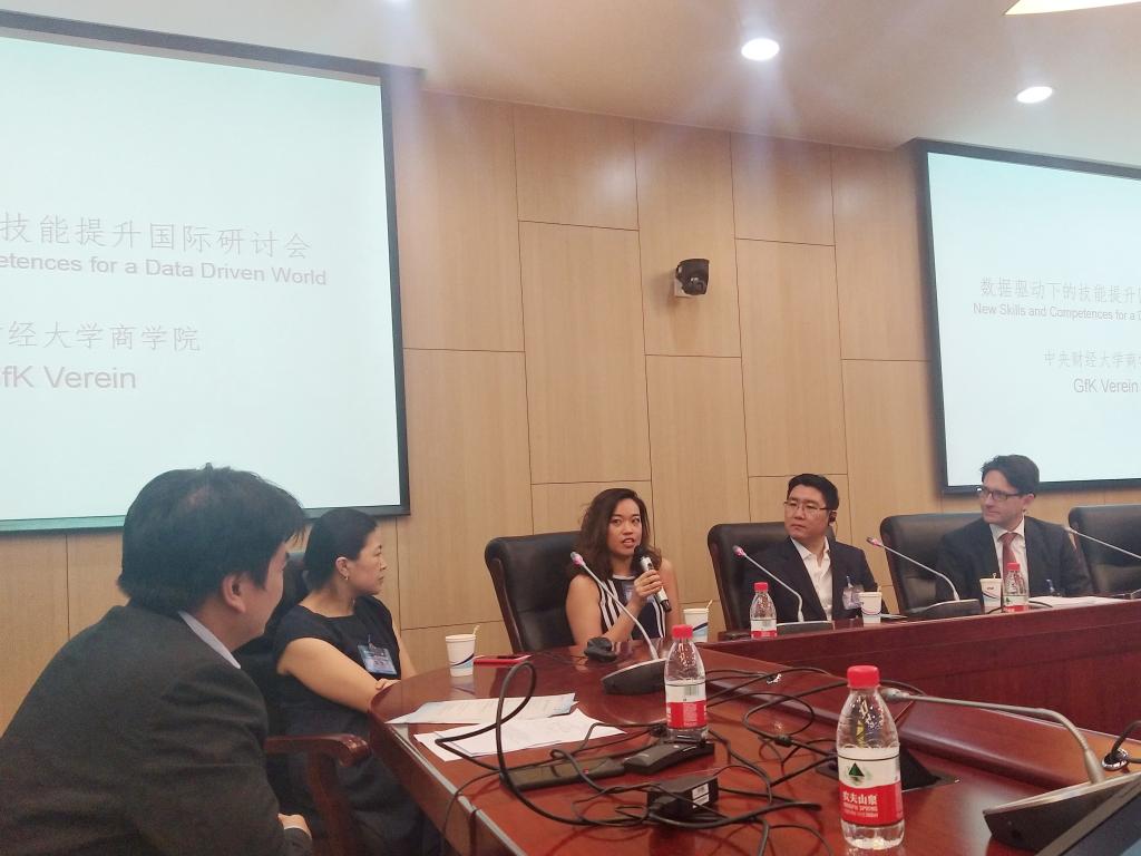 2018年7月7日,beat365官网beat365亚洲版官方网站与德国捷孚凯协会(GfK Verien)联合举办的“数据驱动下的技能提升国际研讨会”在学术会堂604会议室顺利举行。beat365官网beat365亚洲版官方网站客座教授、德国捷孚凯协会副总经理Dr. Andreas Neus、捷孚凯中国总经理周啓群先生、捷孚凯全球培训主管PhyllisMacfarlane女士、德高中国总经理齐梦然先生、市场总监申昕晨女士、车主邦创始人、董事长戴震先生、联合创始人兼CEO王阳女士特邀出席。beat365亚洲版官方网站院长王瑞华教授、党委书记葛建新教授、副院长林嵩教授、副院长于广涛教授出席了研讨会。来自捷孚凯中国的13位企业友人、beat365亚洲版官方网站20余位师生齐聚一堂,共同出席了本次研讨会。