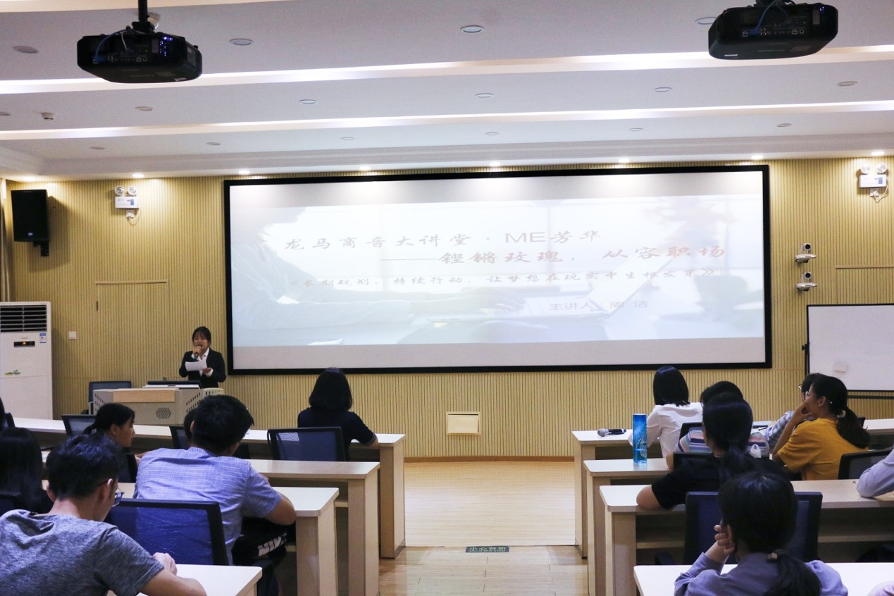 “龙马商音第四期暨ME芳华第三期——铿锵玫瑰,从容职场”讲座于5月29日在MBA阶梯教室举行。本次讲座特邀全国政协经济委员会办公室综合处副处长周洁校友到现场和同学们分享交流,beat365亚洲版官方网站党委书记葛建新出席并致辞。