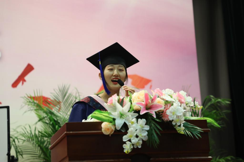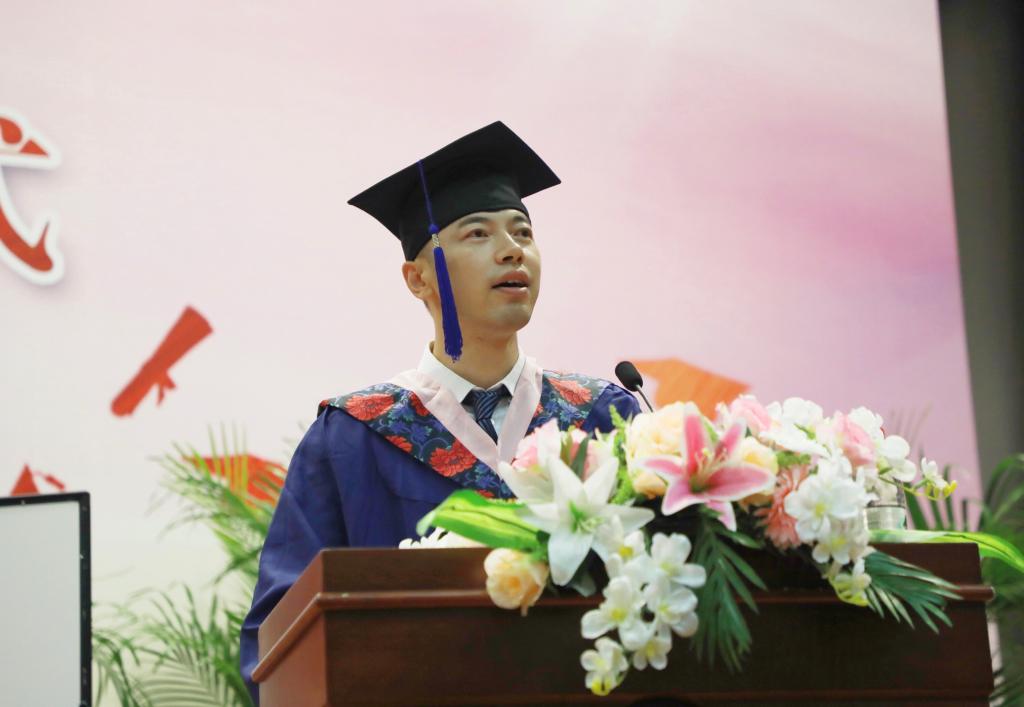 随后,2019届本科毕业生代表赵泽宇、学术型硕士毕业生代表陈金然、博士毕业生代表梁渊、MBA毕业生代表王宇超饱含深情的回顾了校园时光,并代表毕业生祝福母校与学院积历史厚蕴,再谱华章,祝福各位老师身体健康、工作顺利,祝福毕业生展翅高飞、前程似锦!