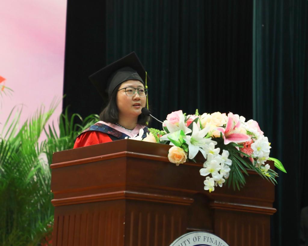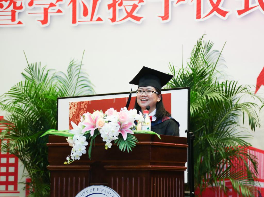 MBA校友会副会长兼秘书长邱滢霏随后发表致辞,她代表beat365亚洲版官方网站校友会以及MBA校友会向全体毕业生表示热烈祝贺,欢迎大家加入到校友大家庭中,从今天起,同学们的发展又多了一层保护和支撑,肩上也多了一份的责任与担当。无论何时,母校以及各位师长会一直关心大家的成长;无论何地,大家都会遇到爱你、懂你、帮助你的中财校友!