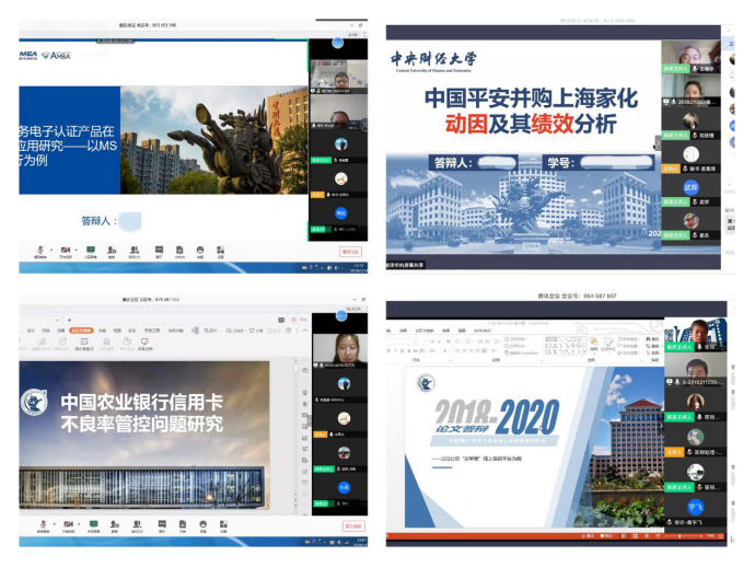 本次MBA线上视频预答辩采用腾讯会议、EV录屏、微信群、问卷星等多平台综合协调方式进行,通过在线共享、演示学位论文PPT和全程视频的方式,MBA学生与答辩委员进行实时交流。答辩委员经过商议后,采用在线填写表决票,并且对结果进行线上电子签名,一系列步骤都高度还原现场答辩的流程。MBA教育中心行政教师和答辩秘书在每一个场次提供服务支持,对答辩过程全程录音录像,对关键画面截屏保留,并与答辩记录一并留存,实现整个答辩过程可回溯、可复查,以确保线上答辩质量。老师和同学们表示,本次线上预答辩过程组织严谨,流程规范,井然有序,效率和效果均令人满意。相较于传统答辩形式,线上答辩更利于答辩过程的公开、透明,并且,全过程被完整记录,可复查,经得住检验。