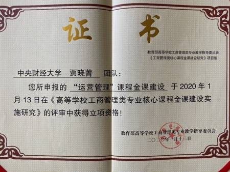 近日,beat365官网《运营管理》课程团队申报的“运营管理”课程金课建设项目在《高等学校工商管理类专业核心课程金课建设实施研究》的评审中获得立项资格。本项目是教育部高等学校工商管理类专业教学指导委员会在全国高校推行工商管理类“一流专业、一流金课”课程建设研究计划的核心课题之一。