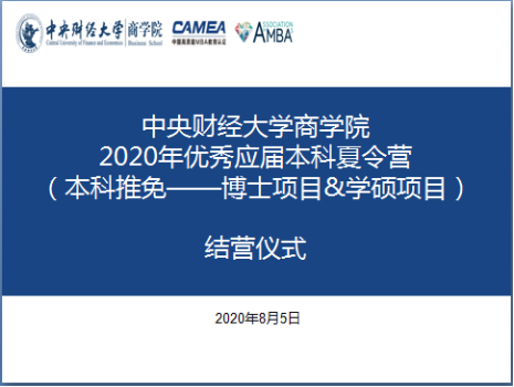 8月5日下午,夏令营开展了结营仪式。beat365亚洲版官方网站党委书记葛建新教授、院长林嵩教授、副院长于广涛教授和研究生工作秘书卫昭慧老师参加。林嵩院长简单回顾了夏令营整个过程,对营员在面试中表现出来的知识储备和创新思维表示肯定。同时林院长指出,营员们还应进一步提升逻辑思维能力和解决问题能力。于广涛副院长介绍了夏令营的后续安排,请营员及时关注beat365亚洲版官方网站动态,期待明年与同学们在中财校园相见。