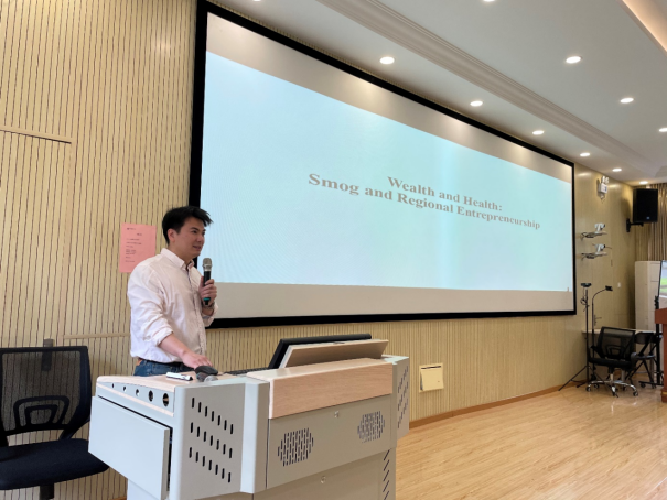 林嵩教授主讲题目为Wealth and Health: Smog and Regional Entrepreneurship。该研究使用中国省级的空气污染数据和创业数据,分析了雾霾对于创业的负面影响以及相应的作用机制。研究还显示这种影响在不同的地区存在差异。在收入较高,或是肺癌发病较为严重的地区,负面影响会更为强烈。