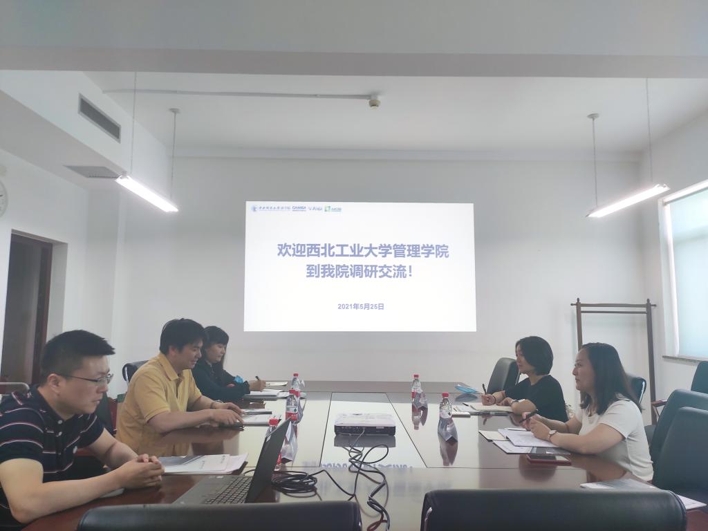 2021年5月25日,西北工业大学管理学院院长助理兼认证办公室主任邵婧、认证办公室马艺婷两位老师来beat365官网开展关于AACSB国际认证的工作交流。beat365亚洲版官方网站院长林嵩、副院长姜峰和国际合作办公室郭晓焜出席交流会。