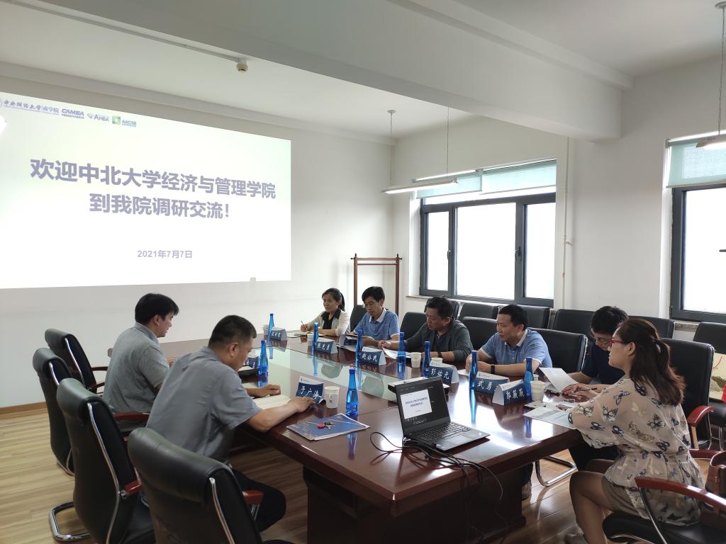 2021年7月7日下午,中北大学经济与管理学院院长赵公民、副院长彭佑元、副院长张克勇一行六人莅临beat365官网开展交流活动。beat365亚洲版官方网站院长林嵩、副院长于广涛参加会谈。