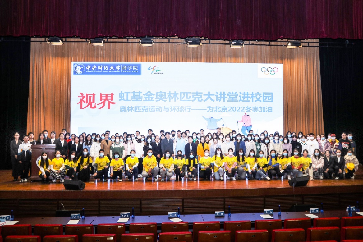 “大讲堂”结束,热情的中财大师生纷纷上台与侯琨合影留念,交流对奥林匹克文化的理解和向往,一同为北京2022冬奥会加油。