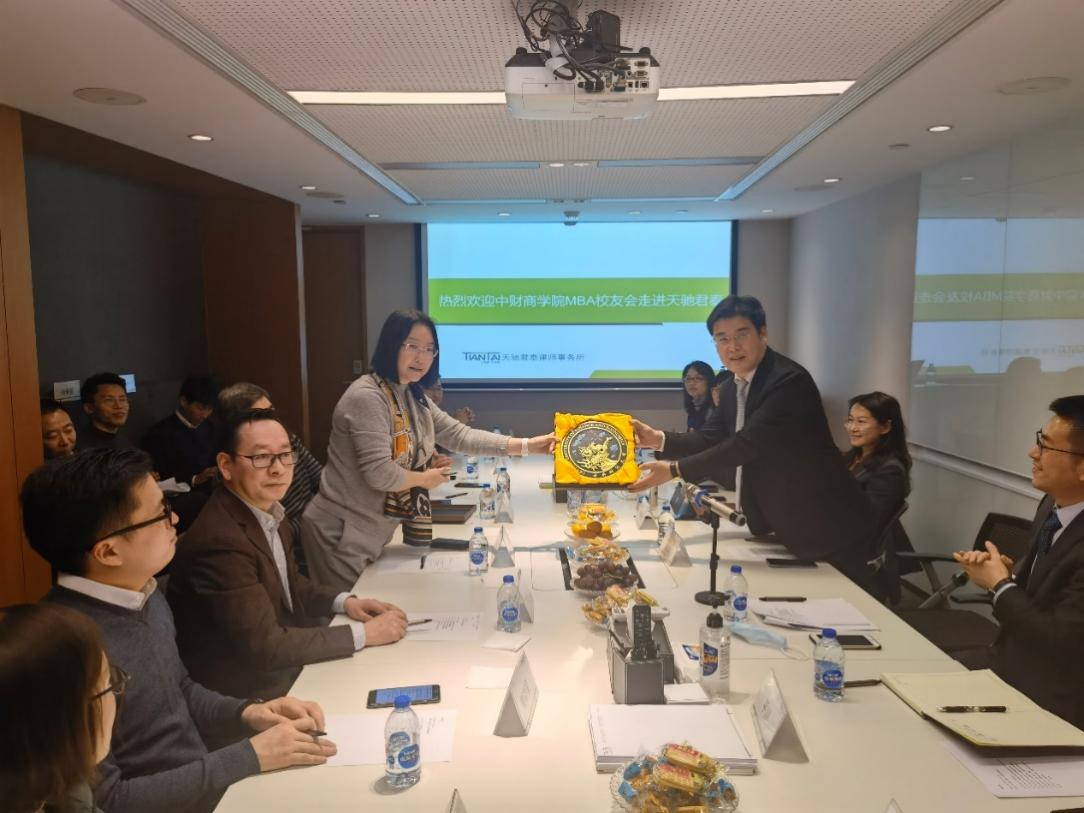 葛建新书记在致辞中对天驰君泰律所对校友企业走访活动的支持表示感谢,她表示本活动给师生校友提供了很好的机会,可全面了解校友所在企业及校友职业发展情况,有助于把课堂中的理论知识与工作实践相结合。她代表学院向天驰君泰赠送了具有学校特色的纪念品。