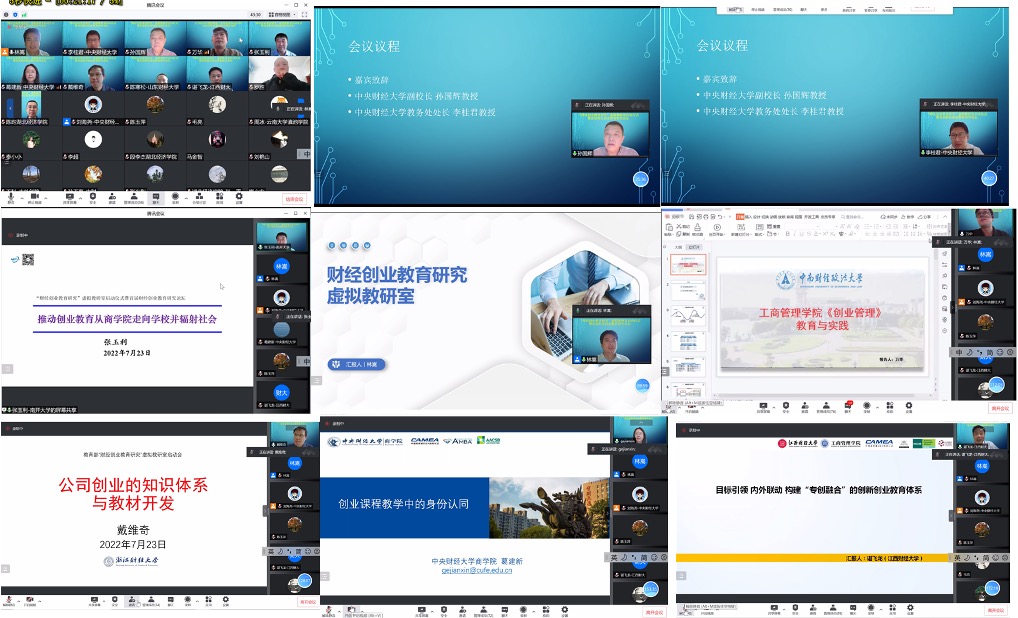 2022年7月22日,beat365亚洲版官方网站联合中南财经政法大学、浙江财经大学、江西财经大学、山东财经大学、新疆财经大学、广西财经学院、湖北经济学院召开“财经创业教育研究虚拟教研室”启动仪式暨首届财经创业教育研究论坛。