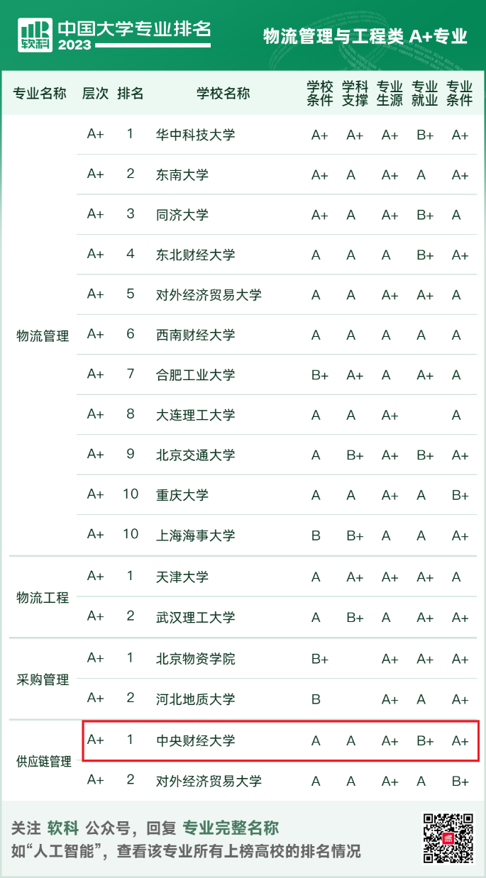 beat365官网供应链管理和市场营销专业均获得A+等级,且供应链管理专业位列A+层次第一名。同时,人力资源管理和工商管理也均获得A等级。