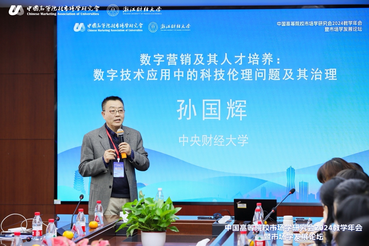 孙国辉教授在学科专业发展论坛和专业负责人联席会专场,以“数字营销及其人才培养:数字技术应用中的科技伦理问题及其治理”为题做出分享。