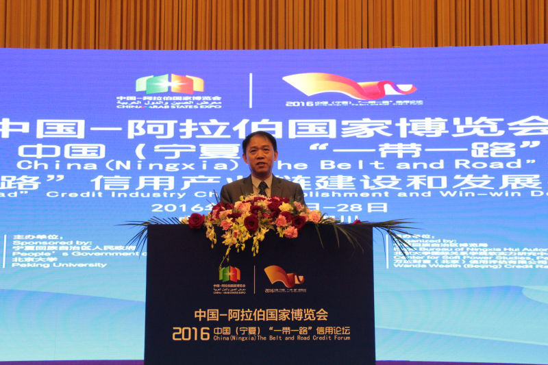 本届论坛由宁夏回族自治区人民政府和北京大学联合主办,论坛以中国-阿拉伯国家博览会为依托,旨在研究创建“一带一路”信用体系,切实深化沿线国家务实合作。作为影响全球的国家大战略,“一带一路”贯穿世界东西,影响全球65个国家,涉及世界63%的人口,经济总量占全球29%。开幕式上蒋正华副委员长指出: “一带一路”建设是一个系统工程,要真正成为推动世界经济复苏的强大动力,信用体系的创新和发展必不可少。但目前,我国的信用体系建设还处于起步阶段,信用评级机构在国际的影响力还很薄弱,因此,推进“一带一路”的全面建设,建立与“一带一路”相适应的、能被沿线国家广泛接受和认可的信用体系,刻不容缓、意义重大。