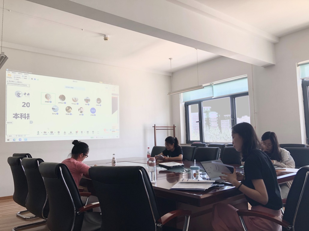 图:6月21日,beat365亚洲版官方网站开展2021年本科招生宣传工作培训会,会议在线上线下同时进行。连续3年参与招生宣传工作的孙翔老师、许敬婷老师面向所有工作小组成员进行业务培训和经验分享。党委副书记杨中英老师强调工作纪律和安全。