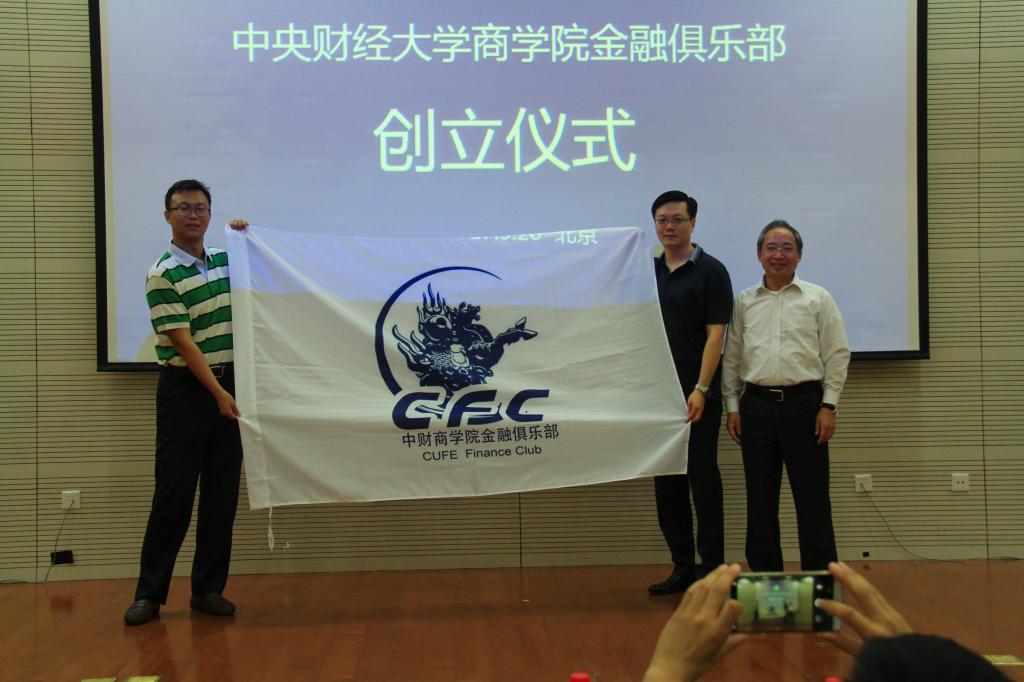 接下来,中财beat365亚洲版官方网站金融俱乐部启动仪式开始,主持人穆童带领大家通过视频回顾了金融俱乐部的缘起和发展历程,并阐述MBA金融俱乐部重组并创立beat365亚洲版官方网站金融俱乐部的发展脉络。王瑞华院长为新的“beat365亚洲版官方网站金融俱乐部”授旗,将印有“中财beat365亚洲版官方网站金融俱乐部”的会旗郑重授予联席主席张庚(97级经管)和程毅(2006级MBA)。