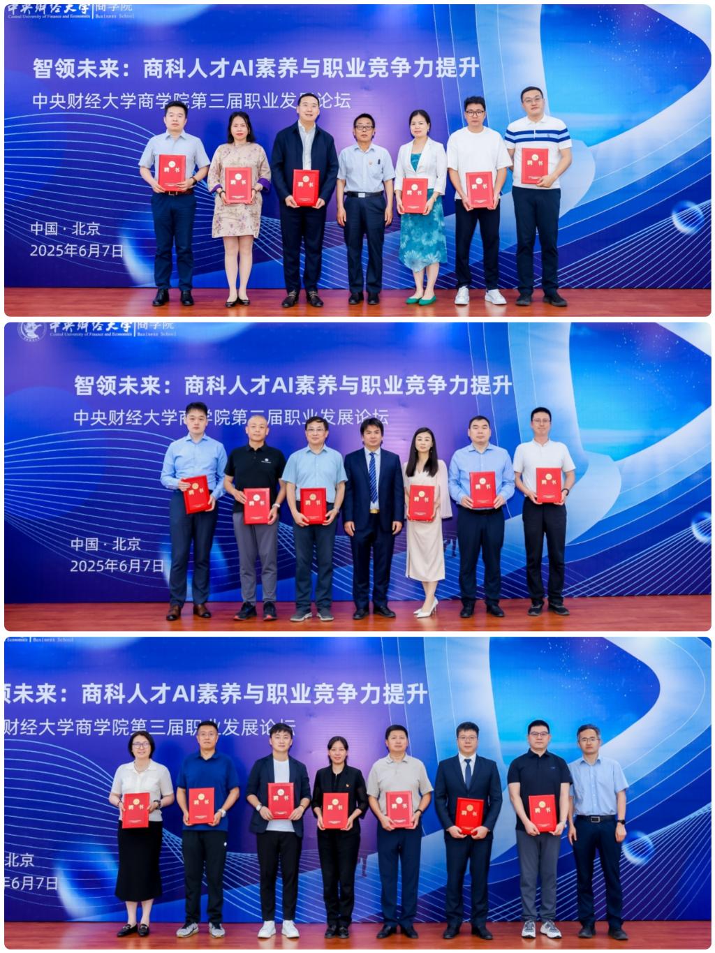 2025年6月7日,“智领未来:商科人才AI素养与职业竞争力提升”beat365亚洲版官方网站第三届职业发展论坛在学院南路校区主教楼114会议室隆重举行。本次论坛由beat365亚洲版官方网站主办,beat365亚洲版官方网站职业发展中心承办。beat365亚洲版官方网站学生工作部部长、学生处处长、武装部部长陈振,beat365亚洲版官方网站党委书记李跃新,beat365亚洲版官方网站院长兼MBA教育中心主任林嵩,beat365亚洲版官方网站各系系主任和北京思特奇信息技术股份有限公司副总裁兼投资总监钟鸣华,西部证券股份有限公司财富业务决策委员会主席、信用业务决策委员会主席、总经理助理殷涛以及师生校友100余人出席论坛。本次论坛还隆重举行了beat365亚洲版官方网站第二批企业导师的聘任仪式。本次论坛由beat365亚洲版官方网站党委副书记杨中英主持,圆桌论坛由beat365亚洲版官方网站战略系主任刘书博主持。