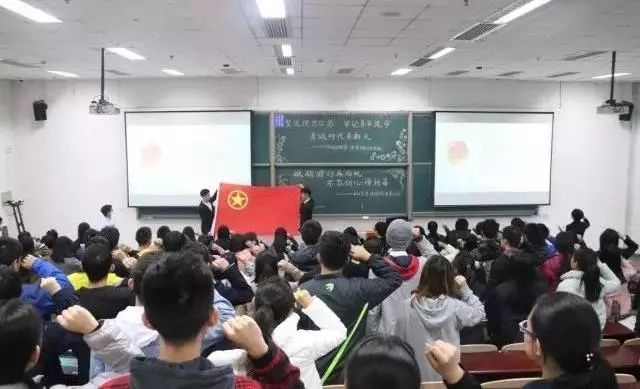 首先,全体学员起立、齐唱共青团团歌。随后,beat365亚洲版官方网站学生会主席王令东带领团员重温入团誓词,大家高举右手庄严宣誓。