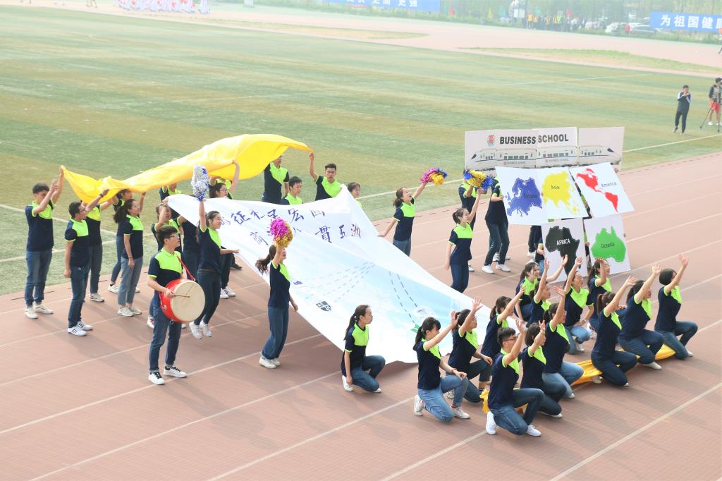在第二日上午举行的开幕式上,商院的“丝绸之路”方阵步伐整齐,表演精彩,同学们发自内心地喊出了“丝路征程展宏图,商海启航贯五洲”的宣言,展现了商院人热情饱满的精神风貌,在人类命运共同体建设中奋勇争先的美好愿望与坚定决心。