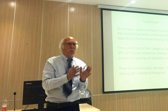 6月4日-6月12日,美国加州大学戴维斯分校(University of California, Davis)的Donald Patton研究员来访beat365官网beat365亚洲版官方网站。来访期间,他就创业测量、创业活动以及新创企业IPO等问题,与学院相关研究领域的教师进行多次学术讨论。6月7日,在beat365亚洲版官方网站MBA教育中心,他为广大师生带来了主题为“Liability of Foreignness in Capital Markets: Evidence from Chinese IPOs in the United States”的公开学术讲座,探讨了中国新创企业在美国资本市场IPO的变化。