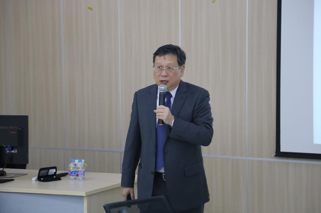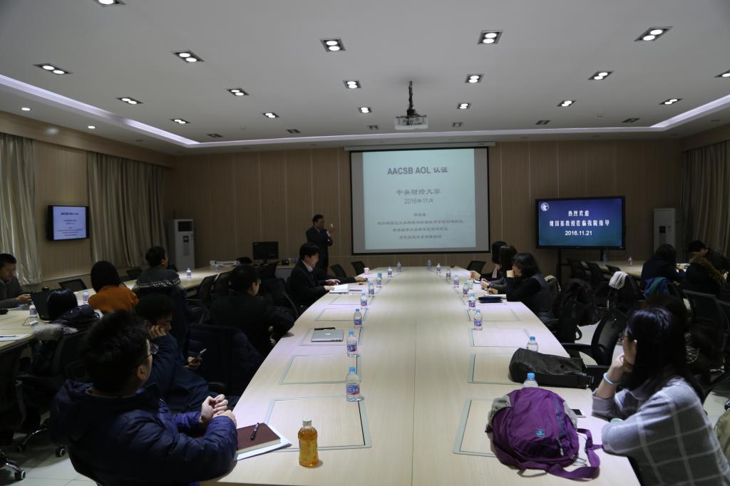 会谈结束后,魏国基教授在MBA中心A02教室面向学院全体教师进行了主题讲座,针对AACSB认证中的课程管理和保障体系(AOL)进行了详细的讲解说明。