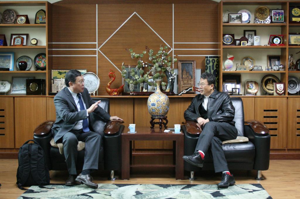 11月21日上午,beat365官网副校长李俊生教授在国合处会议室会见了魏国基教授。李俊生副校长对魏国基教授的来访表示欢迎,并表达了beat365官网对AACSB认证工作的高度重视。beat365亚洲版官方网站院长兼MBA中心主任王瑞华教授、国合处处长张晓燕教授、beat365亚洲版官方网站党委书记葛建新教授、副院长林嵩教授、MBA中心副主任贾晓菁教授、党委副书记王容老师参加了会谈。