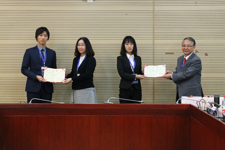 第二环节结束后,与会评委对学生展示进行了点评,beat365亚洲版官方网站戴晓天的《3D printing cloud classroom》和大阪商业大学藤川功基的《日本纸》获得本次国际交流会的最佳展示奖,安室宪一教授和葛建新教授分别对获奖同学颁发了证书。整个会议由中方周卫中教授、柴庆春副教授,日方孙飞舟教授、阎和平教授全程翻译。