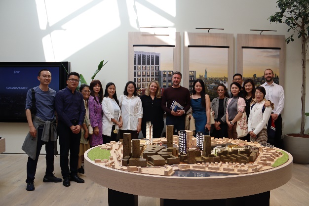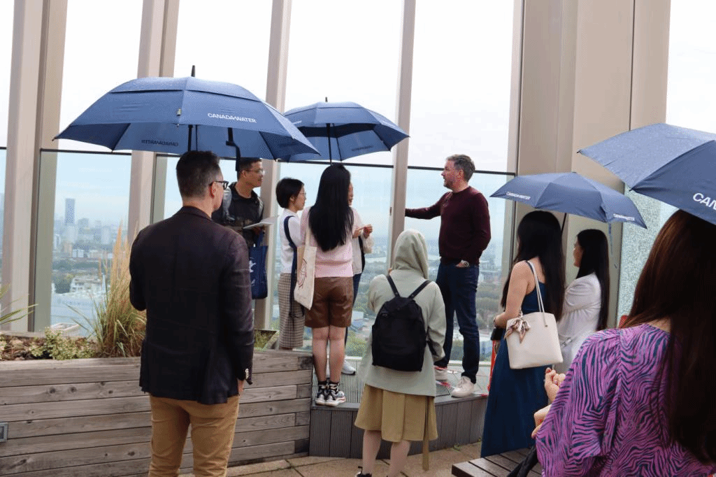 暑期学术项目企业探访的第二站是加拿大水务集团,它是英国领先的房地产公司British Lands的一部分,本次走访的是该集团目前正全力重建的伦敦东南部的Canada Water项目,这片码头区域占地53英亩,该集团致力于在此打造一个全新的集居民区、商业街、高等院校、体育中心、休闲娱乐于一体的中心区域。该项目的开发部总监菲利普·泰特、可持续发展部总监汉娜·法拉赫、营销总监亚历山德拉·麦克莱恩分别为同学们介绍了Canada Water这片区域的发展历史、未来规划以及目前的建设和项目运营情况。通过此次企业参访,同学们对伦敦的城市规划理念、可持续能源在城市建设中的应用以及此类商业项目的运营与营销有了更深入的认识。