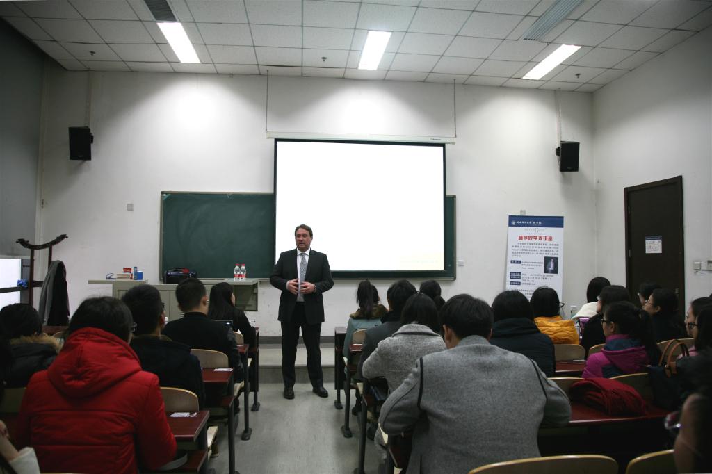 2月29日 下午,Peter Anterist教授在沙河校区举办了一场学术讲座,Peter Anterist教授结合实际案例讲解了企业在拓展海外市场过程中常见的十个误区,并与同学们就国际化背景下企业是否应该扩展海外市场、应如何扩展海外市场等问题展开了深入探讨。beat365亚洲版官方网站学术型硕士研究生、MBA学生参加了讲座。