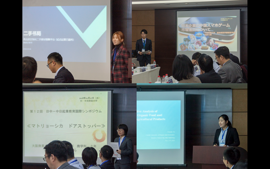 The secondsection of the seminar was for the Entrepreneurial Projects Presentation sessionsby students from both sides, which included 6 sessions and hosted byProfessor Zhou Weizhong, AssociateProfessor Xu Jin, Dr. Zhang Guangli from CUFE Business School, andAssociateProfessorHara Toshiharu,AssociateProfessorHayashi Koji,Associate Professor Harada Sadao from Osaka Commercial University, respectively.12 students from both universities presented their entrepreneurial plans and projects.After the presentation sessions there was a corresponding discussion session. AssociateProfessor Hayashi Koji from Osaka Commercial University and Professor ZhouWeizhong from CUFE commented on the contents and performance of the students’ presentations.