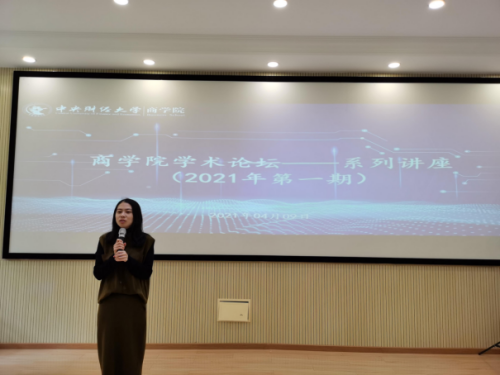 In order to motivate academic involvement and promote academic communication and collaboration between professors and students, CUFE Business School launched theDistinct Academic Forum series. The 1st session of the 2021 CUFE Business School Distinct Academic Forum was held on April 9, 2021. The keynote speaker of the 1st session was Professor Lin Song, Dean of CUFE Business School. The forum was hosted by Dr. Liu Wei. Over 60 faculty and students were attended.