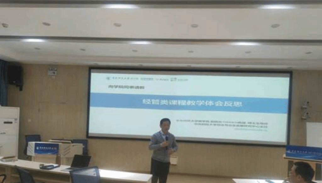 On the afternoon of October 9, the Business School successfully held a teacher experience sharing meeting at Conference Room A28, MBA Education Center, with an aim to discuss and share teaching experience. We were honored to invite Professor Zhu Fei, associate dean of the Business School and deputy director of the MBA Education Center, and Li Jiapeng, a young teacher from the Department of Strategy, to attend this meeting as keynote speakers. All the faculty members of the Business School actively attended this meeting.