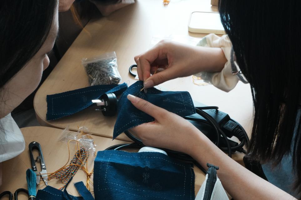 理论学习环节之后,牛钟毓、马佳雪同学分别介绍了竹编扇、香囊与端午节的渊源联系,带领支部党员从其历史、制作步骤和文化内涵等角度深入学习了解中华传统的端午文化,体会其在新时代绽放出的精神光辉。随后的实践环节中,支部党员们通过亲手实践制作竹编扇与香囊与端午文化近距离接触,在手指翻飞与竹线交错中感受传统文化的魅力。