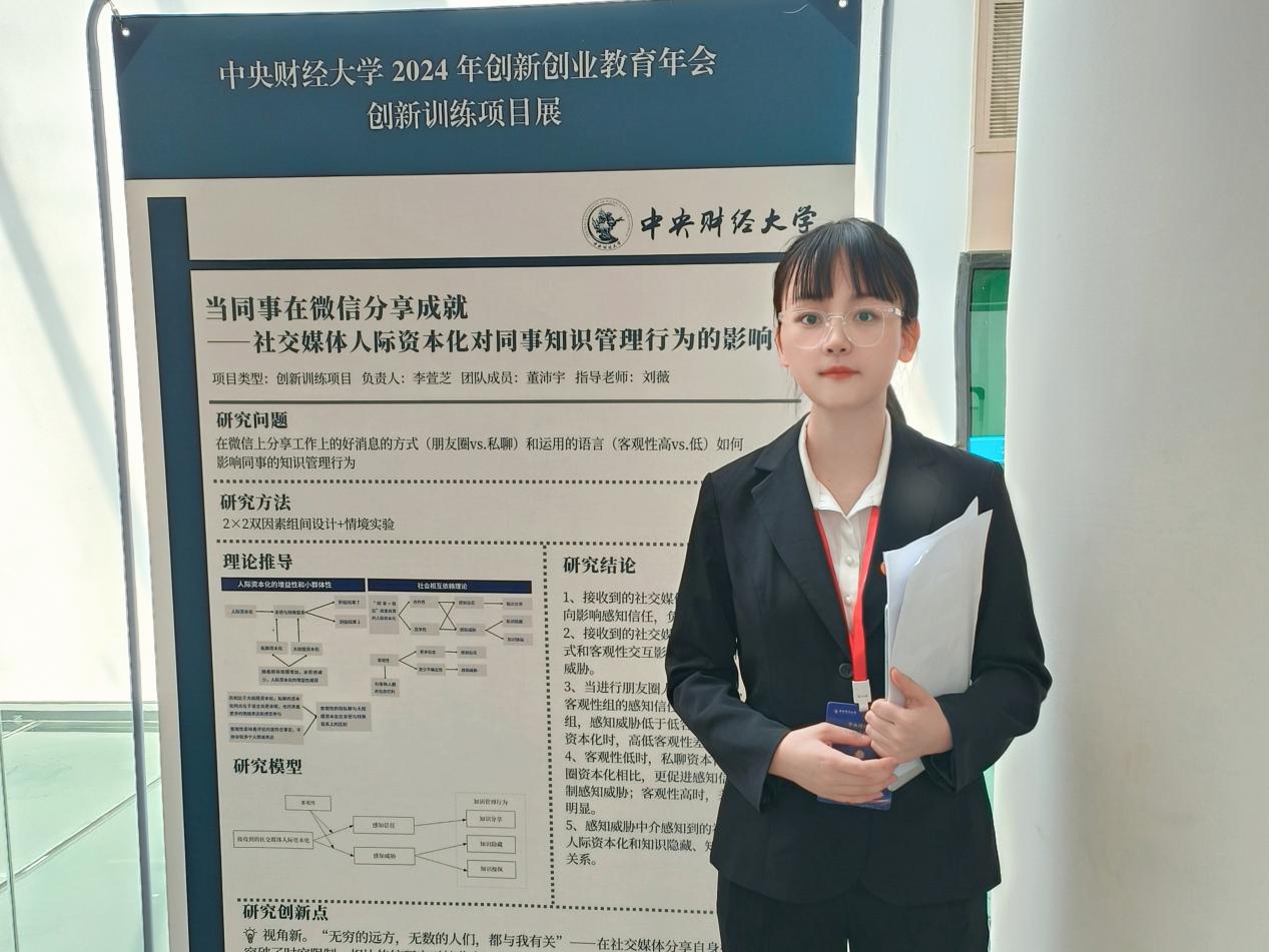 李萱芝同志,女,汉族,2023年6月入党,2021级人力资源管理专业本科生,担任班级组织委员兼体育委员。她坚持以习近平新时代中国特色社会主义思想为指导,立志以“功成不必在我,功成必定有我”的理念,从身边小事做起,烛照周围,践行党员的初心使命,发挥模范带头作用。2023年6月至今,获beat365亚洲版官方网站优秀毕业生、国家励志奖学金(2次)、全面发展奖学金(一等奖1次、三等奖1次)、学业优秀奖学金、德育优秀奖学金和社会实践优秀奖学金等多项奖励;2024年6月,负责的项目获大学生创新创业训练项目北京市级结项;2024年11月,获2024年全国大学生暑期文化科技卫生“三下乡”社会实践“财经报国青年力行”专项活动结项。