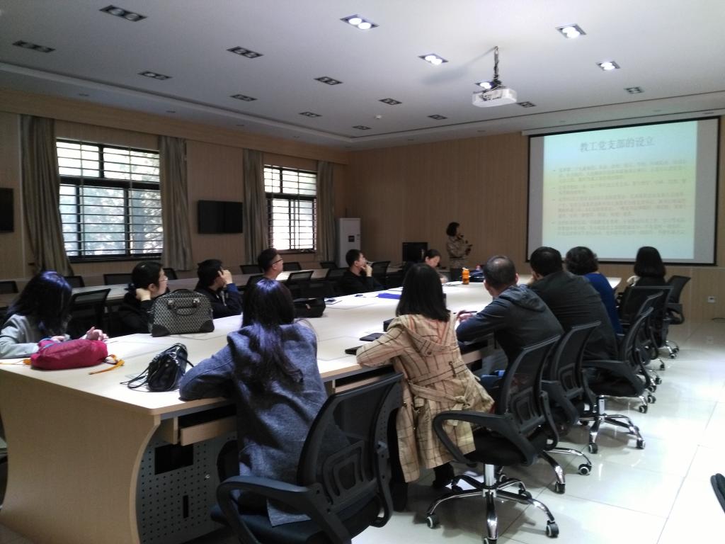 在研讨会上,韩兰老师详细介绍了高校教工党支部的职责、构成、分工、工作重点难点和注意事项等内容。王容老师总结了“两学一做”学习教育前期进展情况,取得的成绩和不足,并对下阶段的工作任务进行了解读。葛建新老师围绕高校教工党支部工作的意义和特点,高校教工党员的使命,如何在“两学一做”学习教育推进过程中加强教工党支部组织和思想建设等问题进行了主题发言。