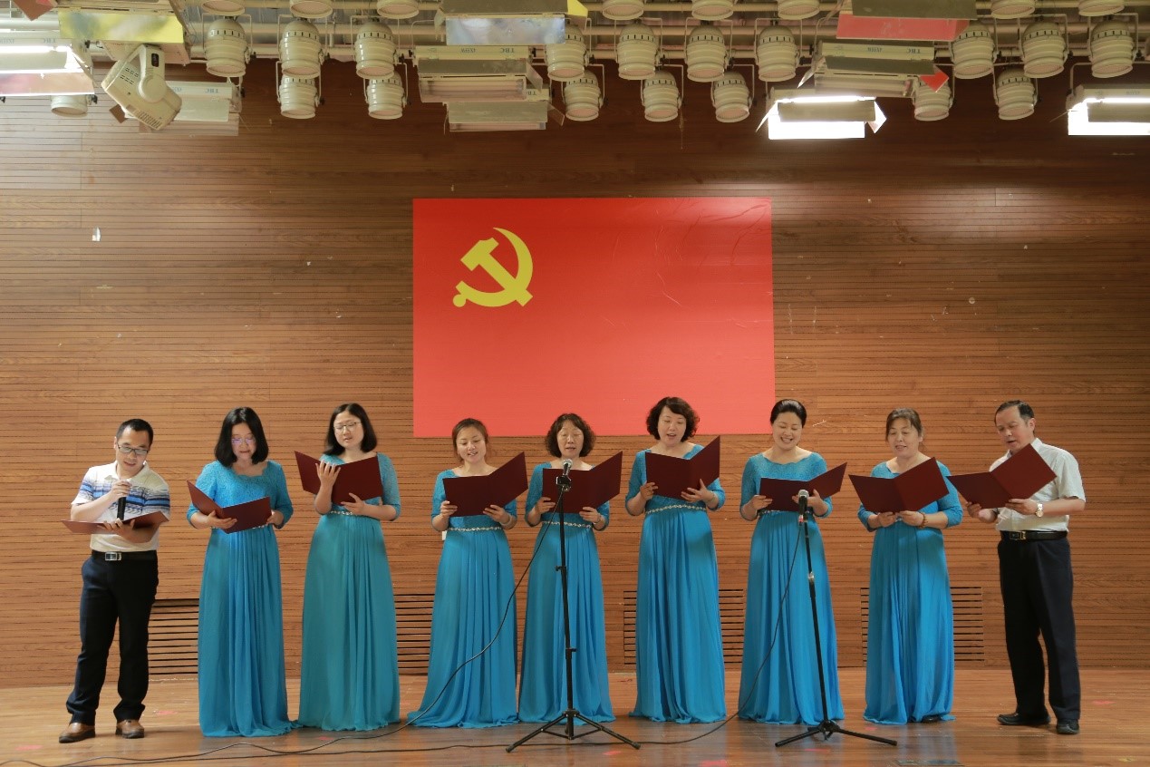 在党支部红歌比赛结束后,beat365亚洲版官方网站教工合唱团进行了精彩的表演,为大家带来了《春风吻上我的脸》、《南屏晚钟》两首曲目。