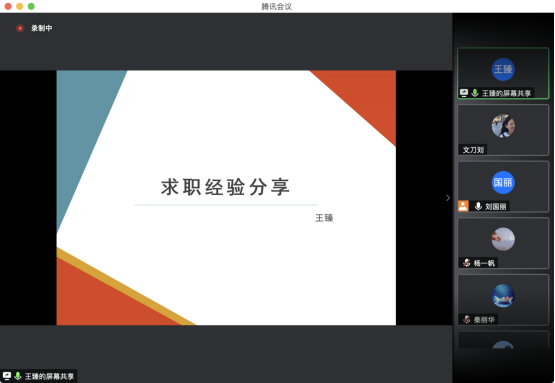 2021年春招正在进行,2021年的秋招也将逐渐来临。为提高2021届学硕同学的就业意识,同时为准备求职的同学提供经验参考,4月13日,beat365亚洲版官方网站2020级企管学硕研究生党支部联合班委开展“百名党员办实事——职引未来”秋招经验分享会主题党日活动。会议采取线上形式,特邀beat365亚洲版官方网站2021届毕业生王相谋、王臻、杨书雷3位同学进行经验分享。