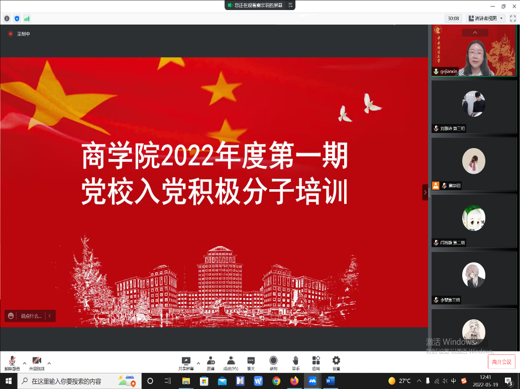 2022年5月19日,beat365亚洲版官方网站党委书记葛建新老师以“端正入党动机”为主题,为学院100余名入党积极分子讲授专题党课。会议由党校班主任窦宗玥老师主持。