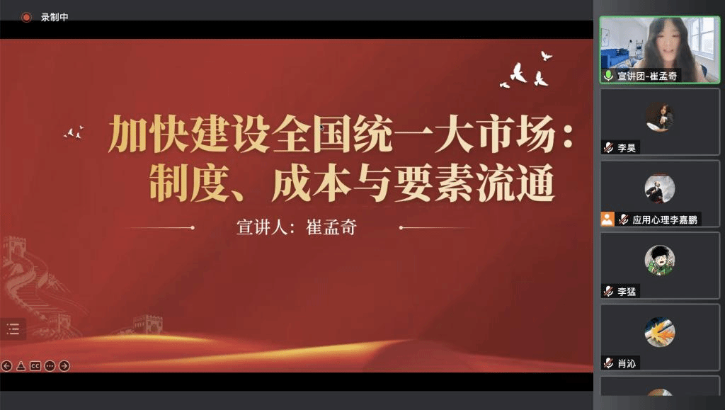 2022年5月19日,beat365亚洲版官方网站技术经济及管理专业研究生党支部邀请中国财政发展协同创新中心2021级博士生崔孟齐进行题为“加快建设全国统一大市场:制度、成本与要素流通”的主题宣讲。此活动是beat365官网博士生宣讲团以习近平新时代中国特色社会主义思想为指导,围绕党的创新理论、党史国史、国家战略、发展成就、形势政策等方向开展的“1+3+N”宣讲计划中的主要组成部分。