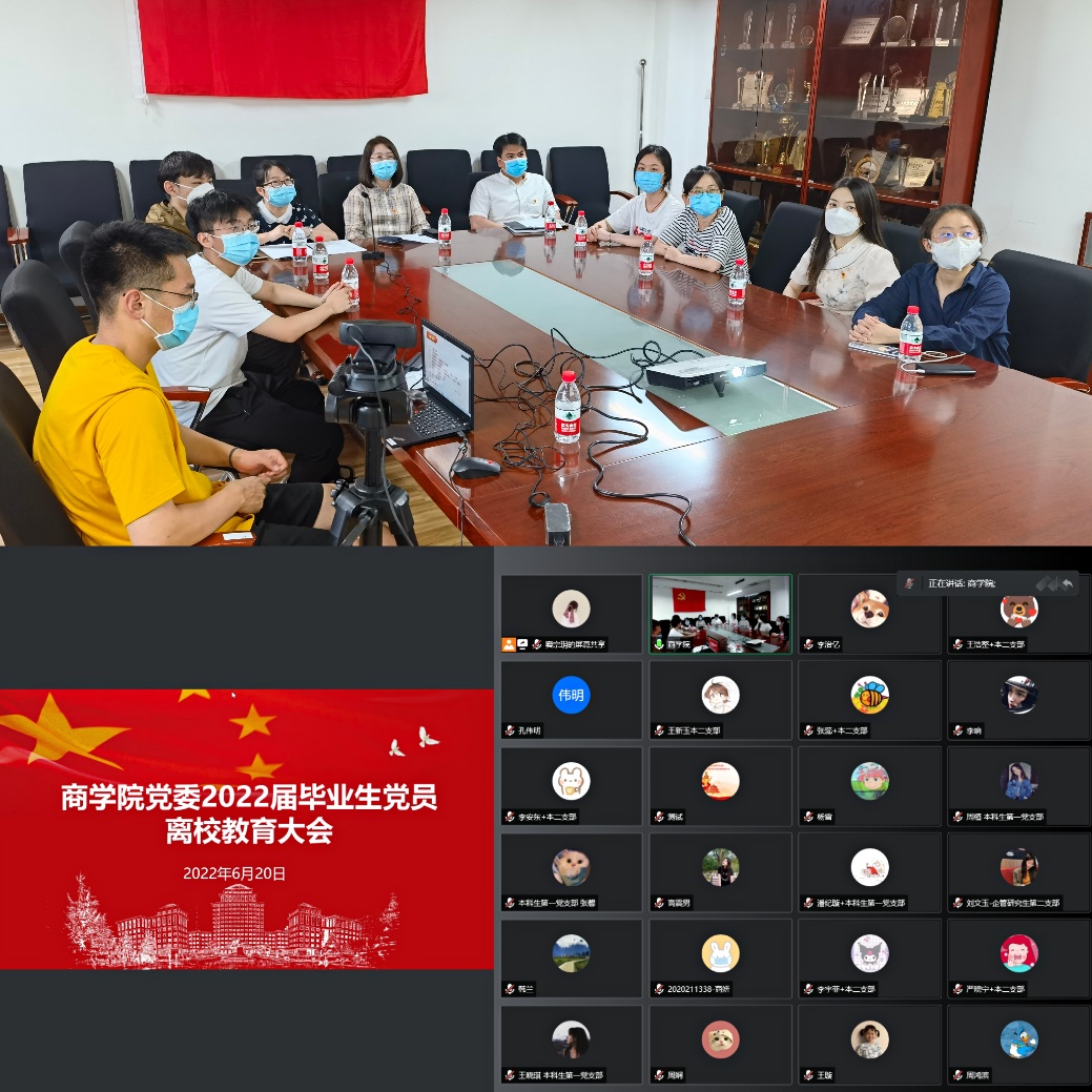 2022年6月20日晚7点,beat365亚洲版官方网站党委通过线上线下相结合的方式召开2022届毕业生党员离校教育大会。beat365亚洲版官方网站党委委员葛建新、林嵩、贾晓菁、韩兰、周利国、刘小元、王震,学生党支部书记王婷婷、窦宗玥、齐岩、高震男、卢继周、孔伟明出席本次会议,beat365亚洲版官方网站2022届全体毕业生党员参加。会议由学院党委副书记杨中英主持。
