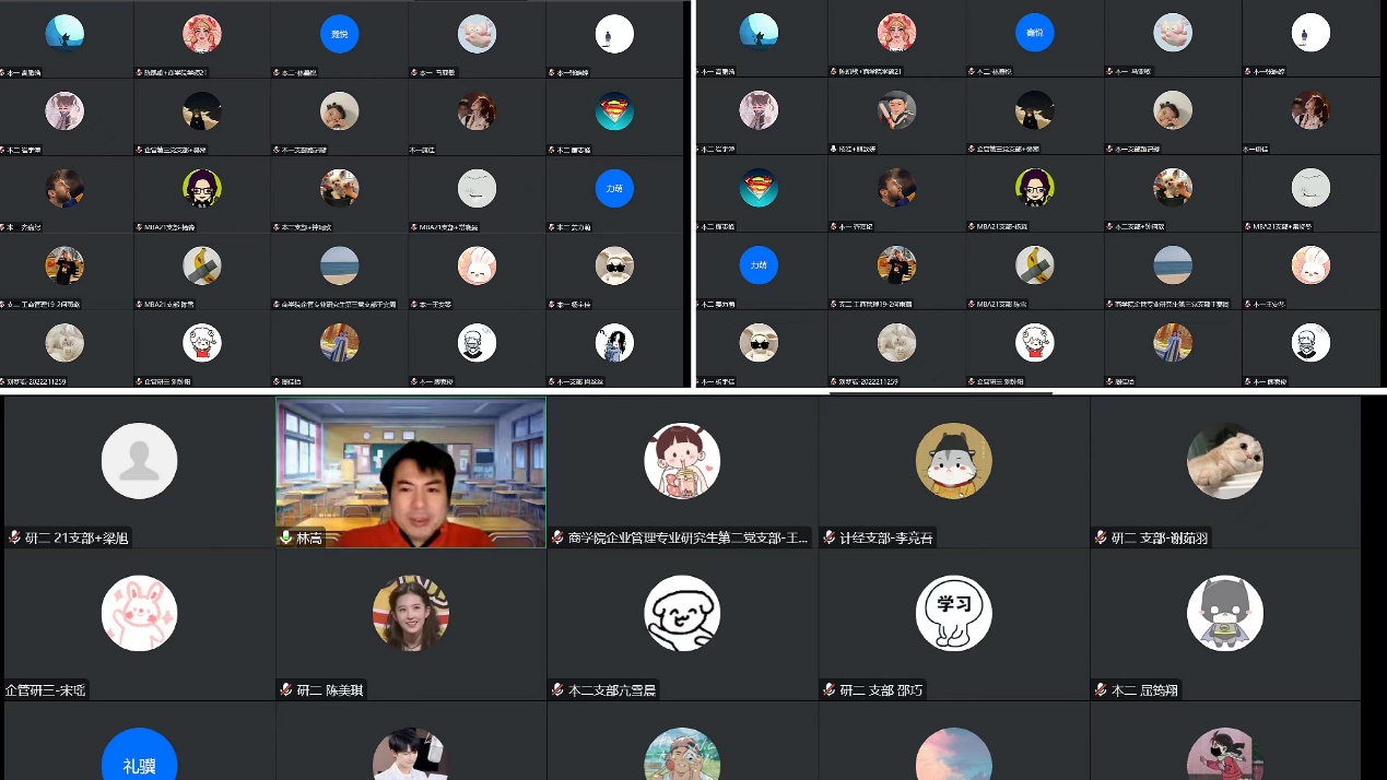 2022年12月2日中午12:30,beat365亚洲版官方网站党委党校“书记讲党课”通过腾讯会议的形式开展,beat365亚洲版官方网站院长兼MBA教育中心主任、院党委副书记、学校学习宣传党的二十大精神师生宣讲团专家代表林嵩教授带来“构建多层次创业知识体系,推进社会经济活动蓬勃发展”的主题课程讲授。本次专题党课由党务干事窦宗玥老师组织,学院54名发展对象、积极分子参加学习。