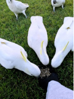 复活节假期是个分水岭。从心理学的视角,culture shock过了蜜月期,消极的情绪就会多一些。复活节前大家课业不重,经常在一起玩。复活节后任务增加,自己和自己相处的时间一下子多了起来,孤独指数单调递增。我只选了三门课,是几个朋友里课最少的,所以也是最闲的。人只要一闲下来就会发现很多有趣的事。每天,同学们焦急的赶公交车回家,我却不慌不忙的穿过大半个学校去码头坐船。下船的码头附近是一家商场,商场里叫merlo的咖啡店门口总会有人排队。澳洲人对自己的咖啡文化引以为豪,号称自己的意式咖啡比意大利的还要好。每周一次我会在这家商场买一包6刀的鸟食。喂鸟绝对是消磨时间最好的方式。葵花凤头鹦鹉,英文名叫cockatoo,全世界只有在澳洲和巴布亚新几内亚才能看到,被列入联合国低危保护动物。据说走私的cockatoo在北京十里河被卖到一万五一只。而在我住的学生公寓后面的公园里,每天都会聚集几十只。粗略算下来我用这6刀喂得可是上百万的鸟,杠杆倍数之高也不枉我是中财的学生。