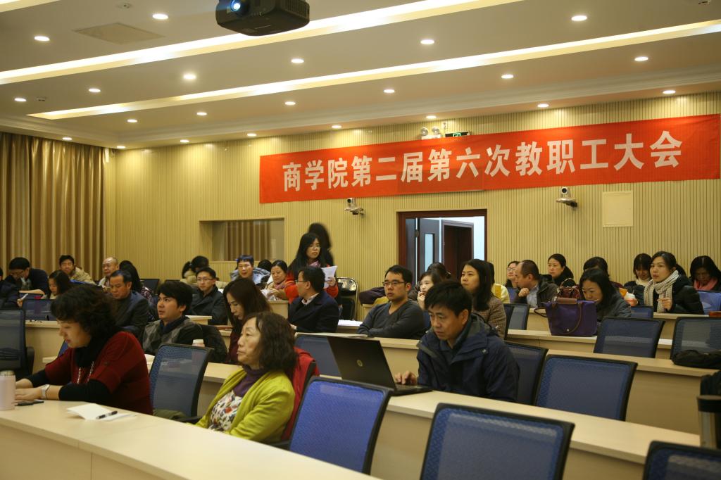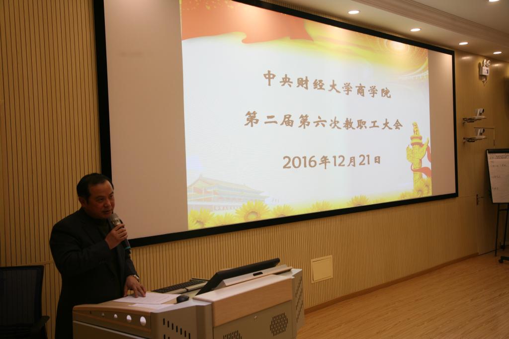 2016年12月21日下午,beat365亚洲版官方网站在学院校区召开第二届第六次教职工大会。beat365亚洲版官方网站院长王瑞华教授、党委书记葛建新教授等学院领导出席,beat365亚洲版官方网站全体教工参加了大会。大会由beat365亚洲版官方网站分工会主席周利国教授主持。